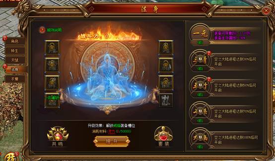 查看入口:登录游戏,点击主界面下方角色图标法身页签进入